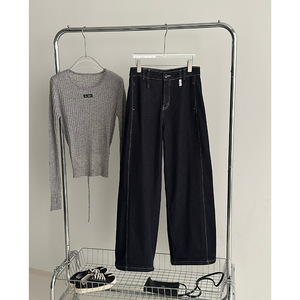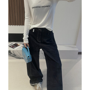 数字款复古蓝直筒牛仔裤25秋季垂感慵懒风阔腿休闲裤长裤女xy4983