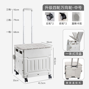 折叠收纳箱拉杆带滑轮户外野餐露营后备箱收纳小拉车大容量购物车