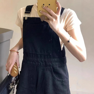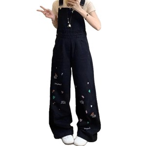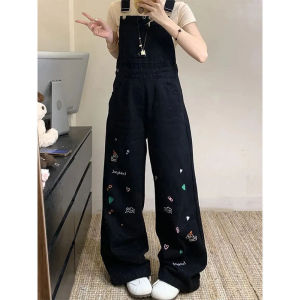 【韩牛】黑色重工刺绣2025秋季新款背带裤女美式复古设计感直筒裤