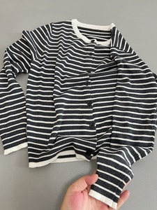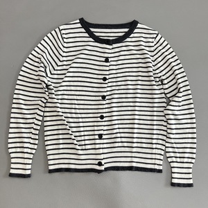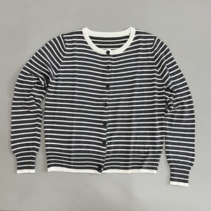 极简气质轻熟细腻条纹针织开衫女百搭秋季新款圆领长袖毛衣外套潮