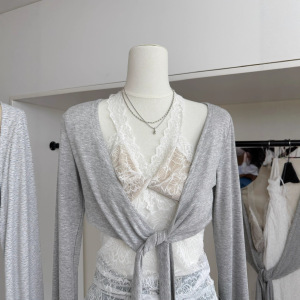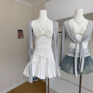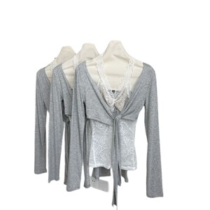 2025秋季新款 纯欲蕾丝系带假两件针织上衣跨境东南亚速卖通