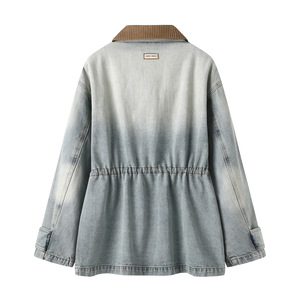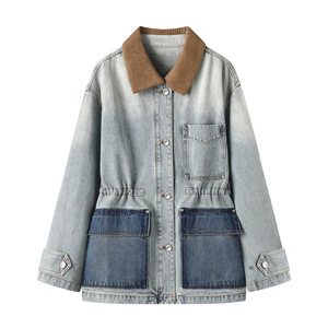 现货2025秋新品撞色复古风收腰牛仔夹克外套70111181