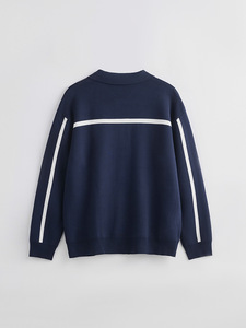 APO男装|跨境毛衣男秋季韩版老钱风宽松翻领撞色长袖针织开衫外套