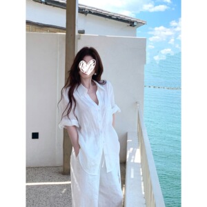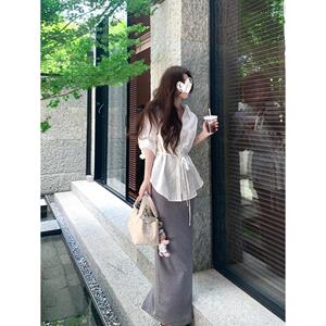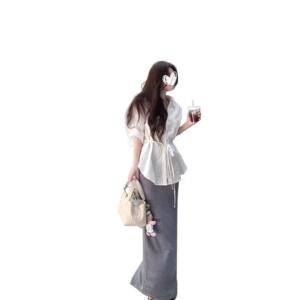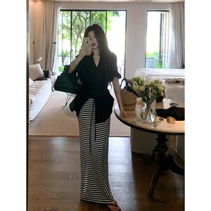 早秋新款宽松百搭简约老钱风衬衫~条纹直筒长款半身裙 其它