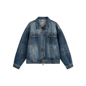 CATTEE美式重工水洗做旧双拉链牛仔外套男女秋季宽松休闲廓形夹克