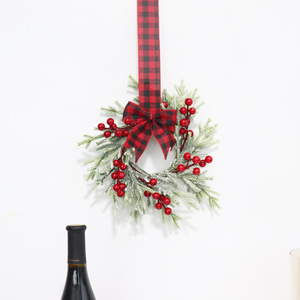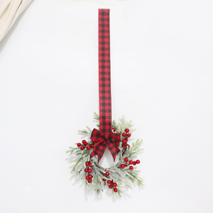 蝴蝶结霜白鹿角松针红果串红黑格子蝴蝶结挂环CW250528