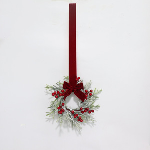 蝴蝶结霜白鹿角松针红果串红丝绒蝴蝶结挂环CW250528