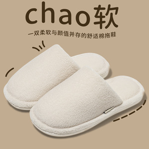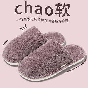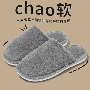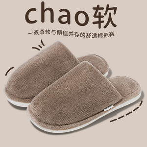 静音防滑棉拖鞋女秋冬情侣居家踩屎感加厚保暖毛绒室内毛毛绒拖鞋