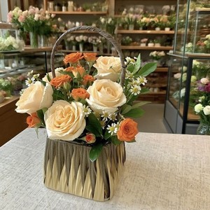 可制作藤编手提干花鲜花插花花艺仿藤手花店花篮客厅摆件照篮子