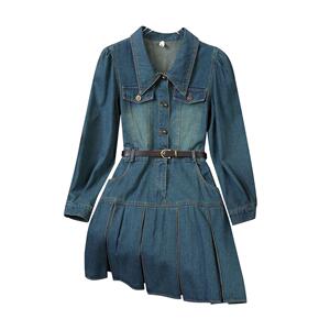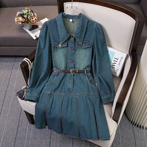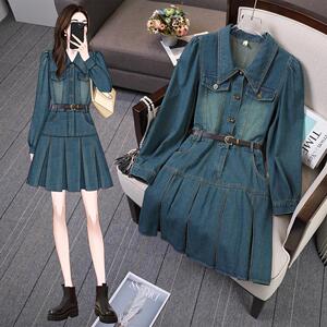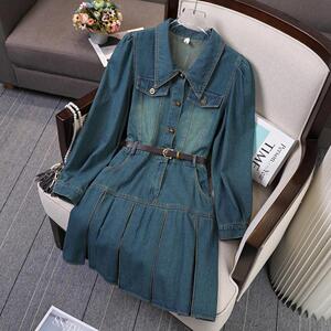 2025早秋新款时尚气质修身复古洋气显瘦中长款胖mm牛仔连衣裙女