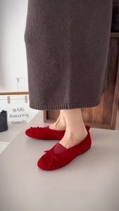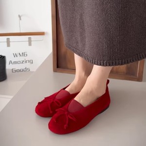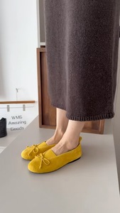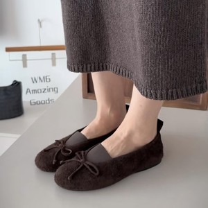 WM6欧洲站女鞋25秋蝴蝶结软长毛牛反绒皮拼橡筋圆头浅口平底单鞋