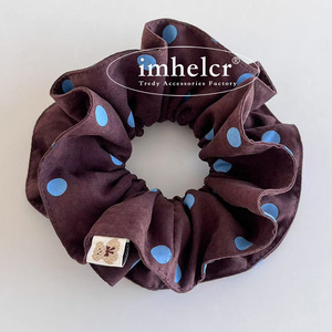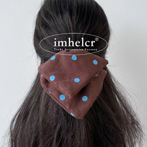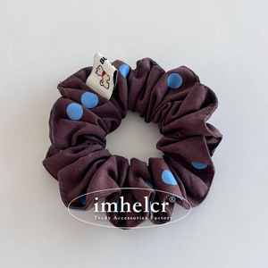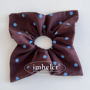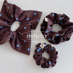 韩系复古蓝波点咖色小熊方巾大肠发圈秋冬新款质感温柔扎马尾发绳
