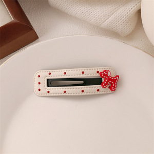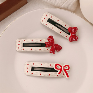 韩版红色波点蝴蝶结甜美皮质发夹bb侧边刘海夹头饰发卡碎发夹子女