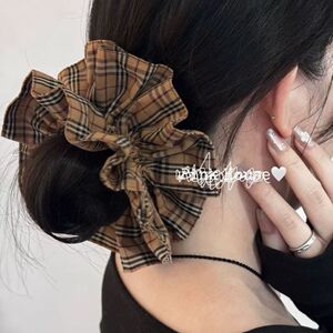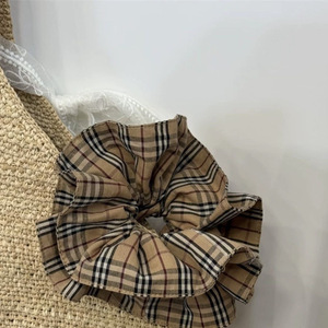 红色格子方巾发圈女蕾丝扎头发大肠发圈新款公主落难头花头饰发饰