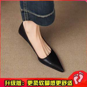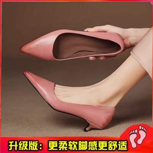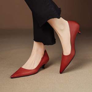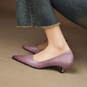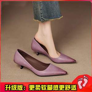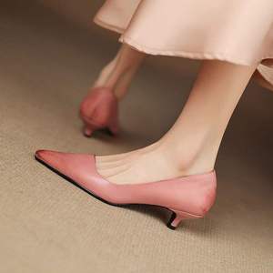 复古尖头单鞋4cm小细跟猫跟女鞋子斜口粉色显瘦全低跟高跟鞋