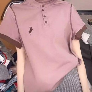 大码小马刺绣立领短袖t恤女春夏2025新款修身显瘦遮肚子时尚上衣