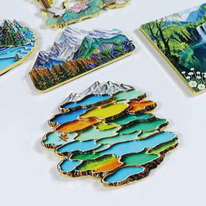 四川文创冰箱贴 新款九寨沟五彩池冰箱贴浮雕金属四川冰箱贴批发