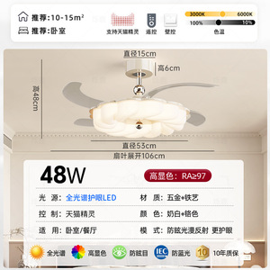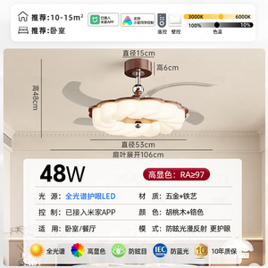 北欧隐形风扇灯中古风隐形吊扇灯静音护眼一体灯餐厅玄关风扇灯