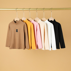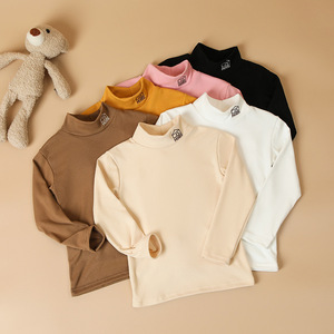 儿童中领打底衫磨毛长袖T恤男女童春秋款打底套头半高领百搭上衣