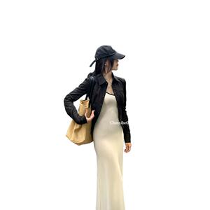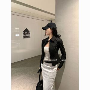 秋季新款黑色收腰衬衫女设计感复古百搭翻领显瘦修身外套上衣拼接