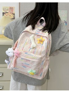 高颜值软妹高中少女双肩包ins日系可爱书包大学生条纹大容量百搭