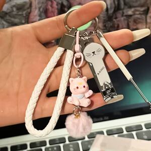 白皮绳+粉色猫毛球挂件+白猫脸指甲剪+白糖果耳勺