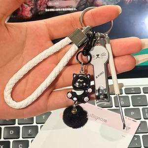 白皮绳+黑色猫毛球挂件+白猫脸指甲剪+白糖果耳勺