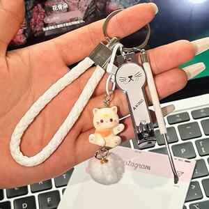 白皮绳+米色猫毛球挂件+白猫脸指甲剪+白糖果耳勺