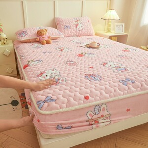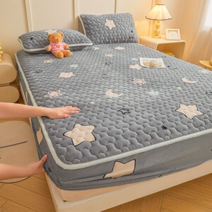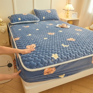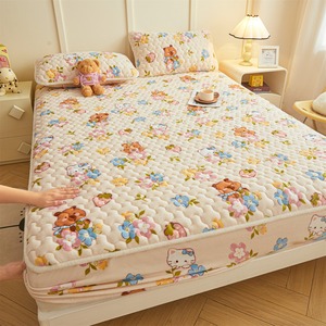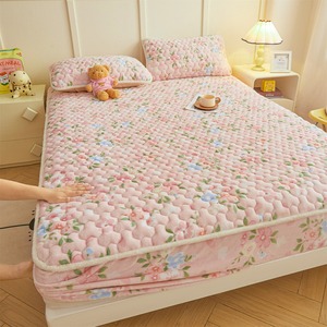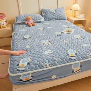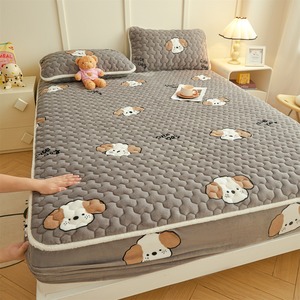 加厚牛奶绒床笠三件套席梦思全包围保护罩隔脏防尘保护套批发跨境