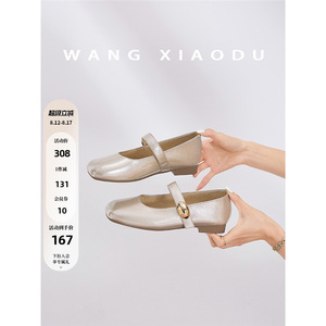 【王小毒】方头小金豆●粗跟玛丽珍女鞋2025年魔术贴镜面浅口单鞋