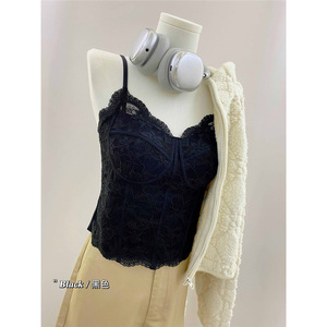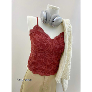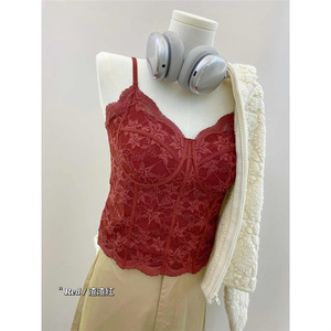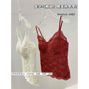 马甲线2代保暖背心秋冬磨毛蕾丝吊带女带胸垫外穿红色打底衣6100