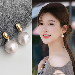 金色拉丝圆球耳环女时尚独特设计感耳钉小众轻奢高级感冷淡风耳饰