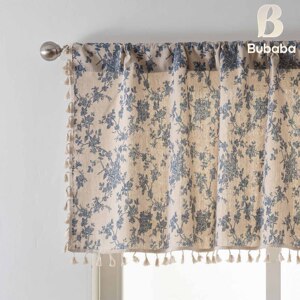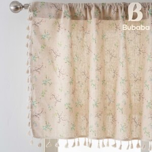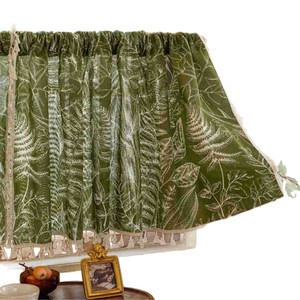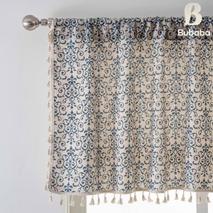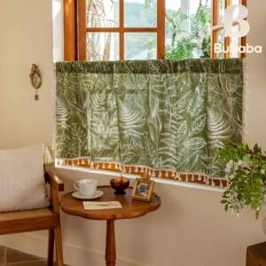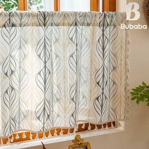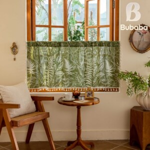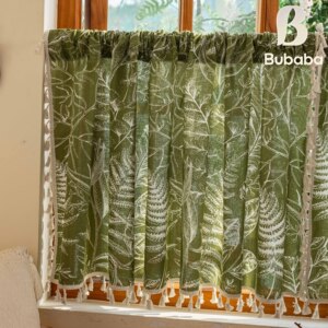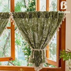 布爸爸跨境美式风绿色枫叶短帘流苏半帘客厅卧室厨房小窗帘成品帘