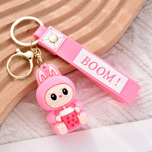 卡通动漫拉布布钥匙扣可爱奶茶杯小绵羊硅胶公仔挂件包包挂饰礼品