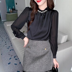 法式木耳边雪纺衬衫女秋冬季2025秋季新款设计感上衣打底洋气小衫