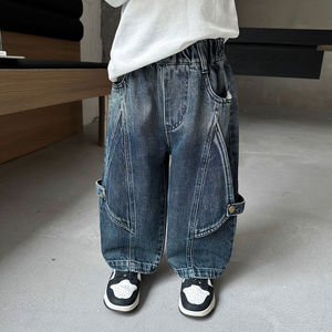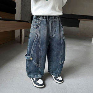 男童春秋季牛仔裤2025新款儿童秋装裤子男孩宝宝宽松休闲直筒裤潮