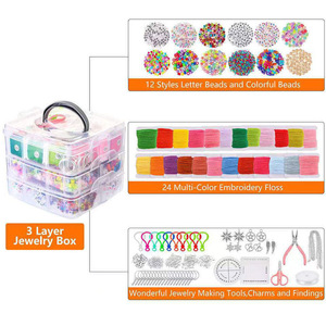 亚马逊爆款三层首饰盒 字母五角星桃心散珠子DIY串珠项链饰品配件