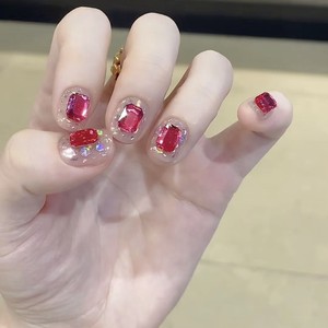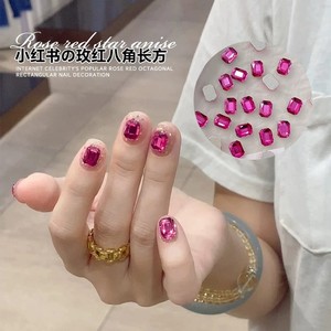 网红新款K9倒边平底八角钻美甲饰品超闪玫红色方糖异形钻指甲装饰