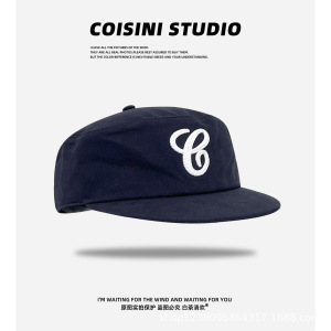平顶复古棒球帽男女字母刺绣大脸显脸小平檐军帽鸭舌帽子跨境新款