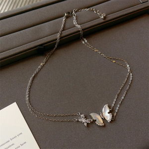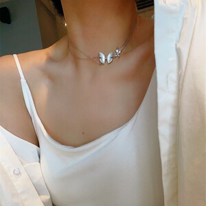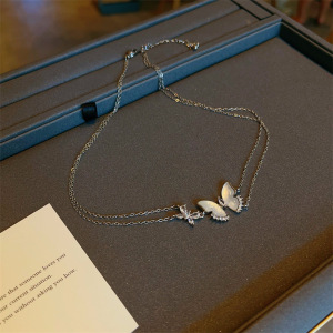 小众设计高级感双层白贝蝴蝶项链女简约短款颈链气质精致锁骨链