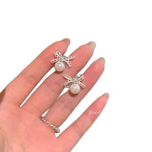 2025新款赵露思同款耳钉蝴蝶结珍珠耳环女小众设计感轻奢气质耳饰