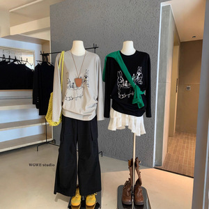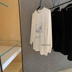 【WGWE】兔子餐厅&线条感显瘦宽松卡通长袖防晒上衣长袖T恤W6851#