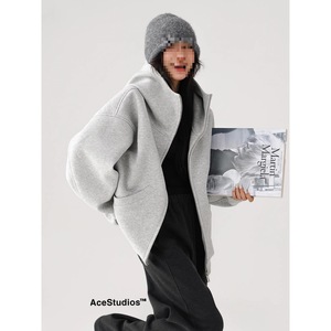 春秋新款重磅解构帅美式复古街头高级感廓形连帽开衫加厚卫衣外套