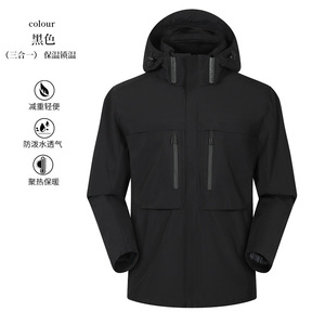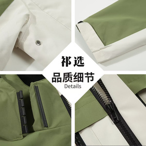 冬季两件套户外冲锋衣定制logo三合一连帽工作服拼色防风防水刺绣