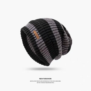 日系条纹字母宽松大头围毛线帽子女秋冬天保暖百搭针织帽堆堆帽男