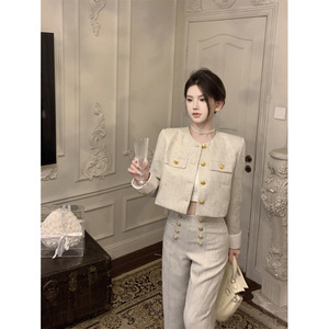 高级感小个子法式小香风套装女春秋装轻奢高级外套长裤两件套