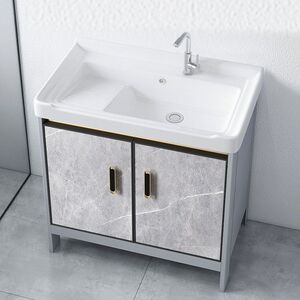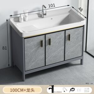 带搓衣板太空铝洗衣柜阳台洗衣槽池陶瓷洗手台盆落地式浴室柜组合