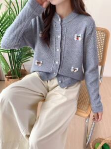学院风长袖针织毛衣开衫外套女2025秋新款设计感时尚洋气外穿上衣