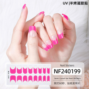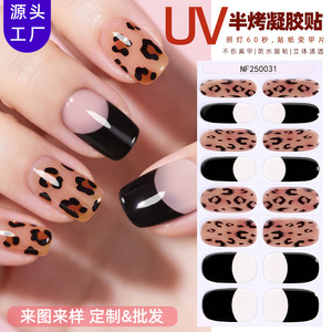 正祥跨境新款法式豹纹半固化凝胶美甲贴少女防水半烤照灯UV指甲贴