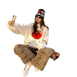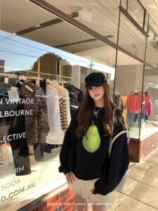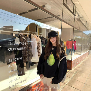 设计感苹果印花卫衣女秋冬季2025新款韩系慵懒风圆领套头薄款上衣